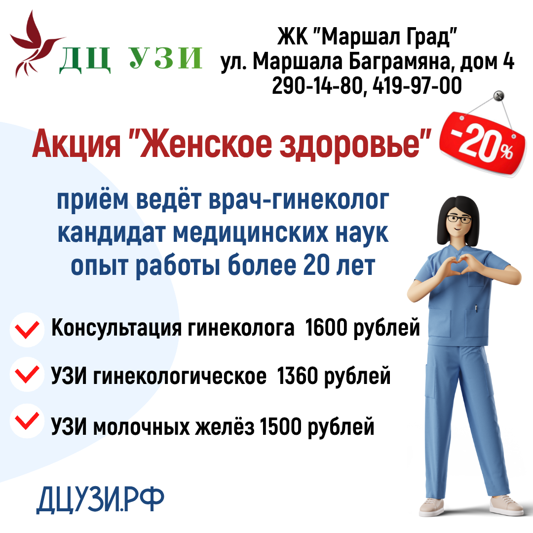С 5 НОЯБРЯ В ФИЛИАЛЕ ДЦ УЗИ ПО УЛ.МАРШАЛА БАГРАМЯНА,4 НАЧИНАЕТ ПРИНИМАТЬ ГИНЕКОЛОГ!